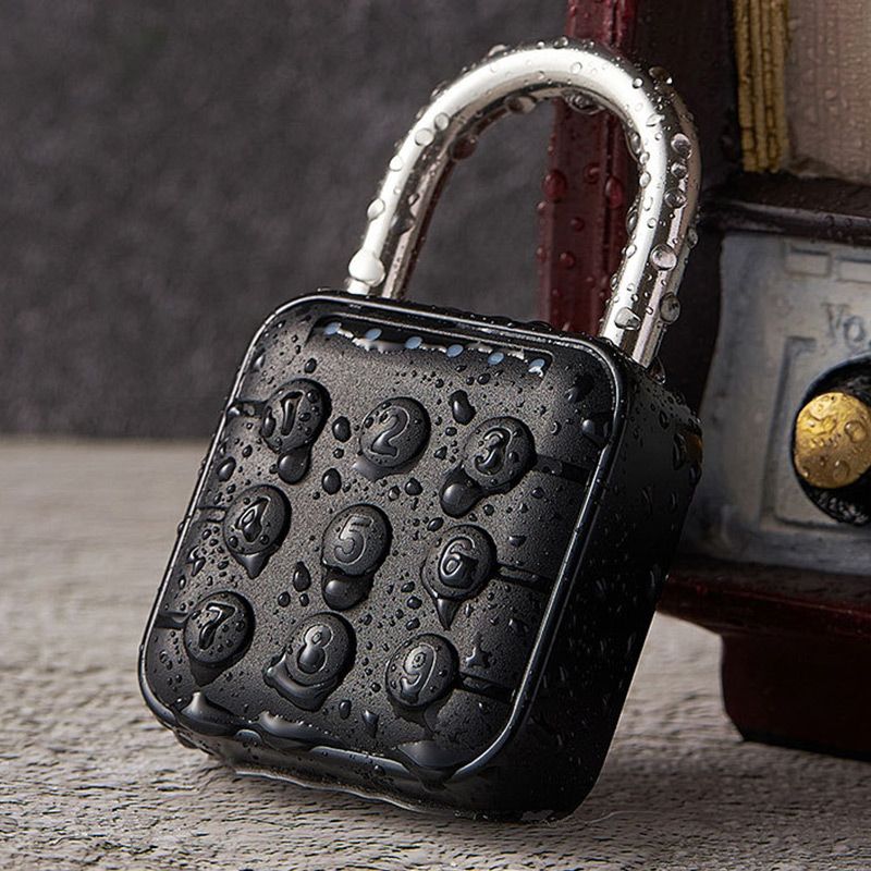 DRUCKKNOPFSCHLOSS: Das Vorhängeschloss kann einfach durch manuelles Eingeben des Passworts geöffnet werden, um das Problem zu vermeiden, dass es aufgrund von Fingerabdrücken oder Ölflecken nicht geöffnet werden kann, was sehr praktisch ist.