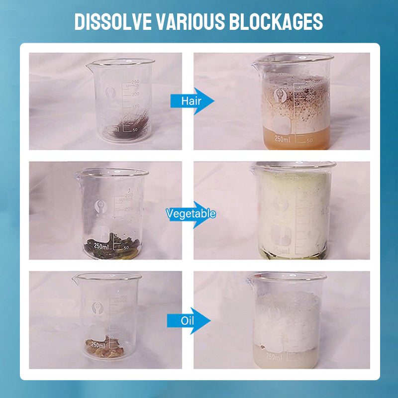 * Leistungsstarke Funktion: Er kann Rohrverstopfungen wie Haare, Papier, Seifenschaum, Gemüse, Obst, Speisereste, Fett und organische Stoffe schnell auflösen.