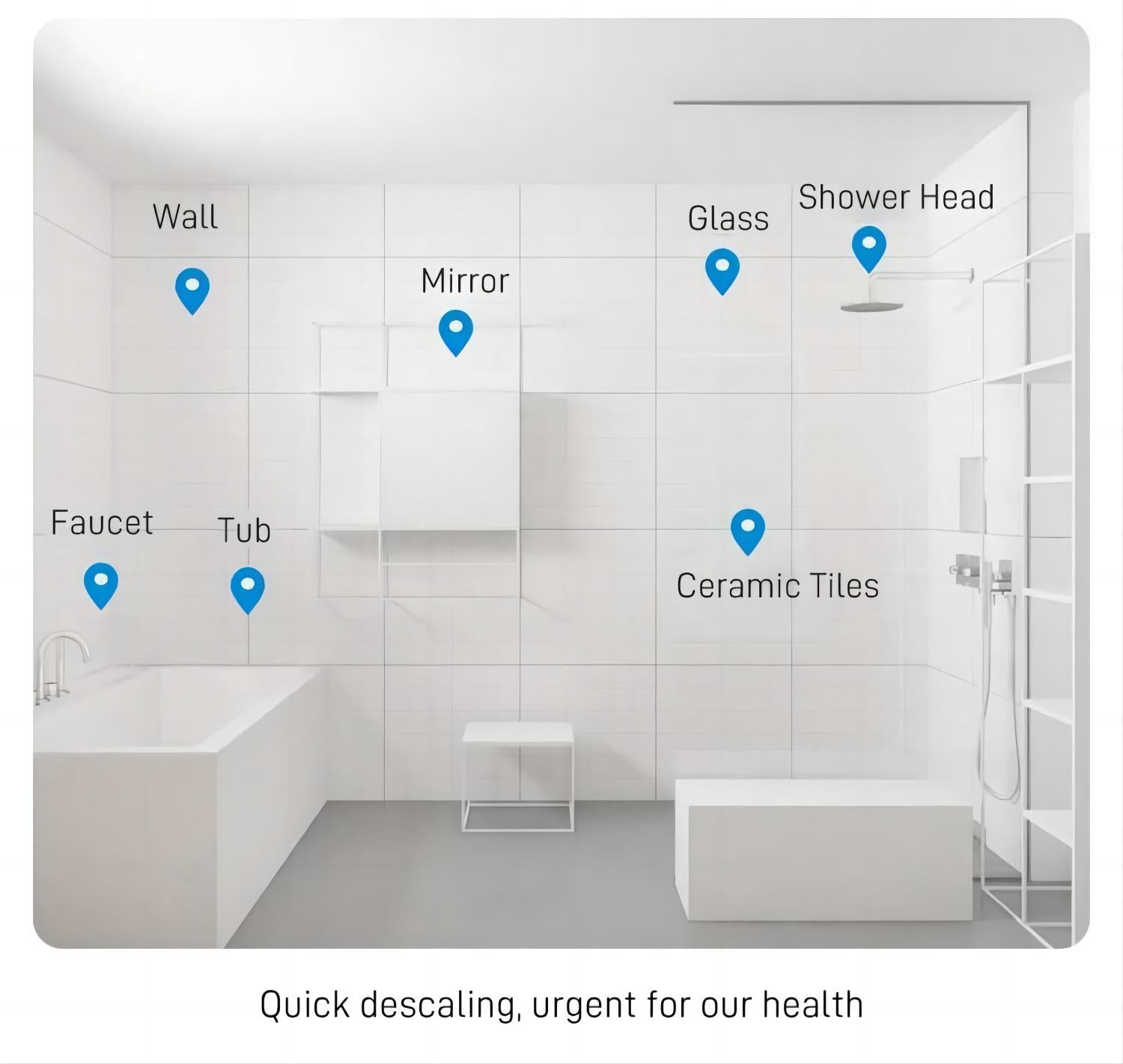 Geeignet für: Fliesen, Waschbecken, Duschen, Badewannen und alle Badezimmeroberflächen
