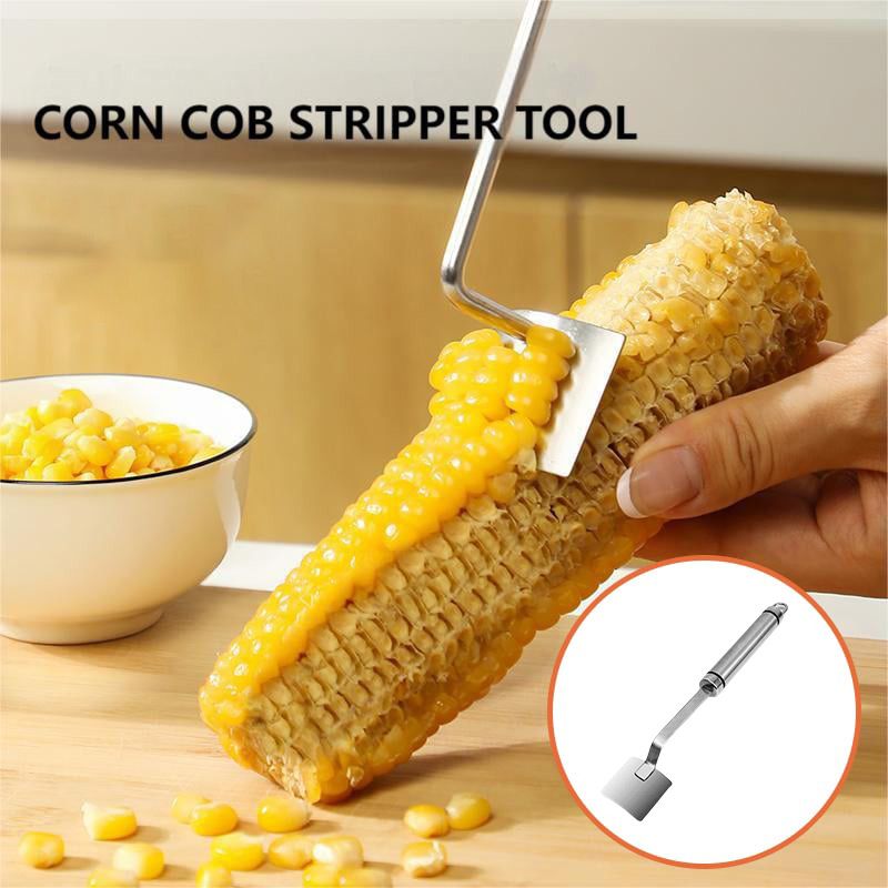 MAISKOLBEN-ENTKERNWERKZEUG: Das gebogene Design aus Edelstahl passt sich der Form des Mais an und erleichtert so das Auslösen. Das Entkernwerkzeug für Maiskolben ist auf den Kern des Mais ausgerichtet und entfernt den Mais mit einer schnellen Druckbewegung von Hand vom Kolben.