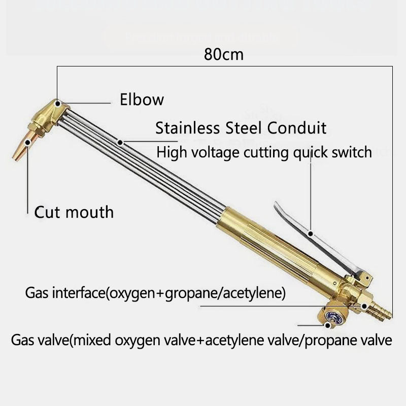 DREI-RÖHREN-Konstruktion - Die Drei-Röhren-Konfiguration ermöglicht die präzise Steuerung und Einstellung des Sauerstoff- und Brenngasdurchsatzes, so dass Sie die Schneidflamme für verschiedene Metallstärken und -arten optimieren können.
