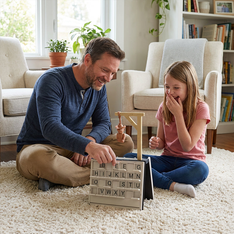 3D-TAKTILES ERLEBNIS – Erleben Sie das klassische Rate-Spiel wie nie zuvor. Diese Version ersetzt Stift und Papier durch physische Buchstaben und Körperteile, was jedes Rätsel für alle Spieler fesselnder und interaktiver macht.