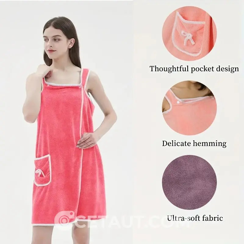 ⏳ LETZTER TAG IM ANGEBOT: 50% Rabatt auf das zweite Produkt⏰Damen Bademantel aus Coral Fleece – Schnelltrocknend, Atmungsaktiv & Bequem mit Verstellbaren Bändern | Ideal für Dusche, Pool, Yoga | Hautfreundlich & Vielseitig