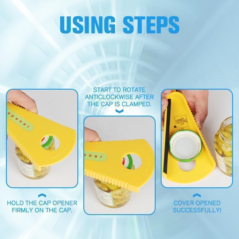 Der Glas-/Flaschenöffner ist für Menschen gedacht, die Schwierigkeiten beim Öffnen von Flaschen und Gläsern mit Schraubverschluss haben. Die Öffnung ermöglicht das Öffnen von kleinsten Flaschen, wie z. B. Miniatur-Likörflaschen, aber auch von größeren, dichten Einmachgläsern und anderen Lebensmittelbehältern. Es macht es einfach zu öffnen.