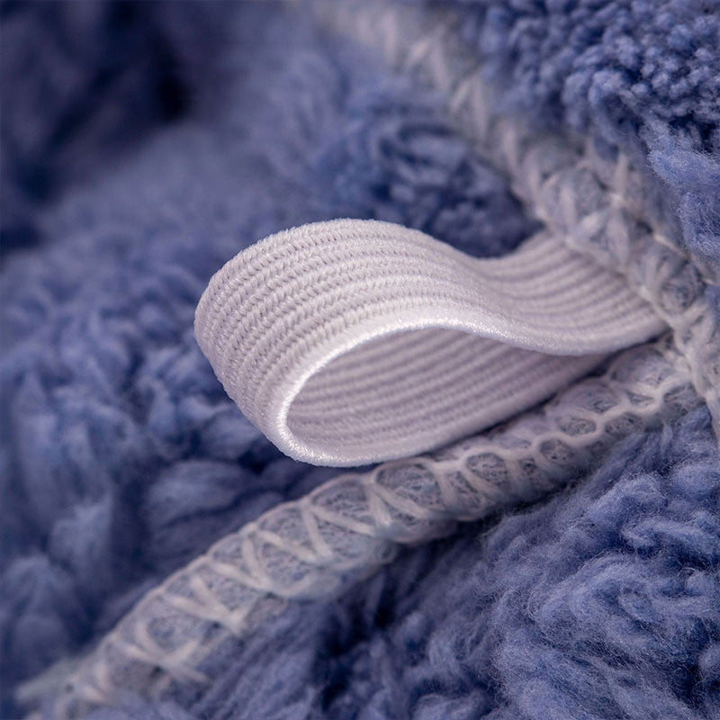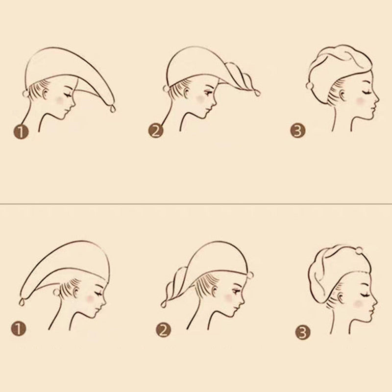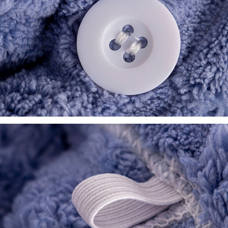 ANWENDUNG: Einfach das Handtuch über den Kopf ziehen und darauf achten, dass alle Haare bedeckt sind. Mit dem Knopfverschluss befestigen.