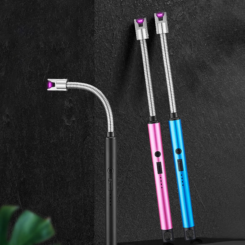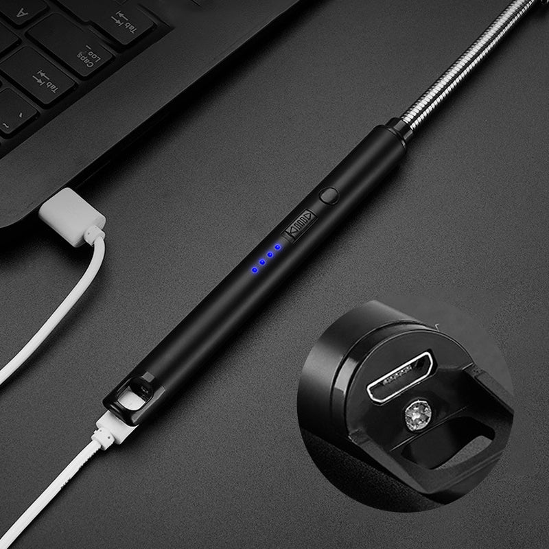 Längerer flexibler Hals - Eine Variante unseres elektrischen Langfeuerzeugs hat einen flexiblen Hals (ca. 10 cm oder 4 Zoll). Er kann sich leicht um 360 Grad drehen für verschiedene Zündbedürfnisse.