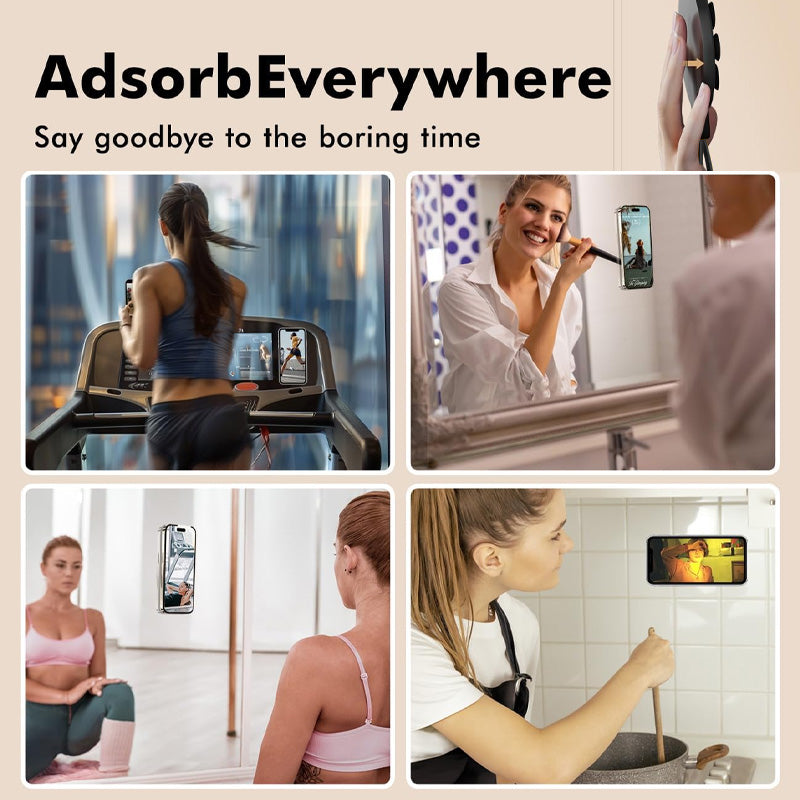 PERFECT PHONE HOLDER: Attach your phone to any smooth surface for seamless photo taking, video recording, and movie watching. Ditch the tripods and create content on the go!