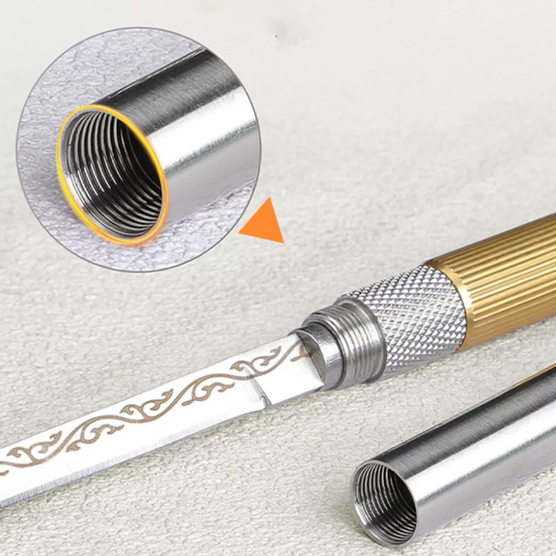 INNOVATIVE KOMBINATIONSLAGERUNG - Das Messer verfügt über ein intelligentes Design, bei dem sowohl lange als auch kurze Klingen mit einem robusten Außenrohr aus Stahl kombiniert werden können und so ein kompaktes Rundrohr bilden. Dieses Design sorgt für eine einfache Lagerung und Tragbarkeit ohne Kompromisse bei der Funktionalität.