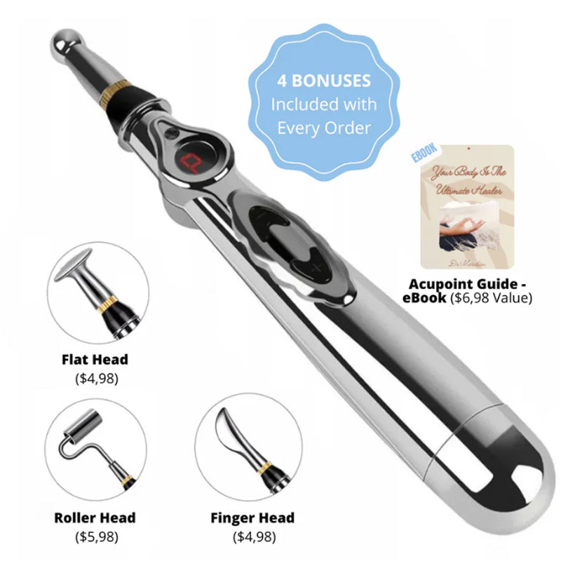 NADELFREIE AKUPUNKTUR : Erleben Sie die Vorteile traditioneller Akupunktur ohne Hautpenetration. Es werden sichere, niedrigvoltzige elektrische Impulse verwendet, um Meridianpunkte zu stimulieren, was auf natürliche und nicht-invasive Weise hilft, Schmerzen zu lindern und die Durchblutung zu fördern.