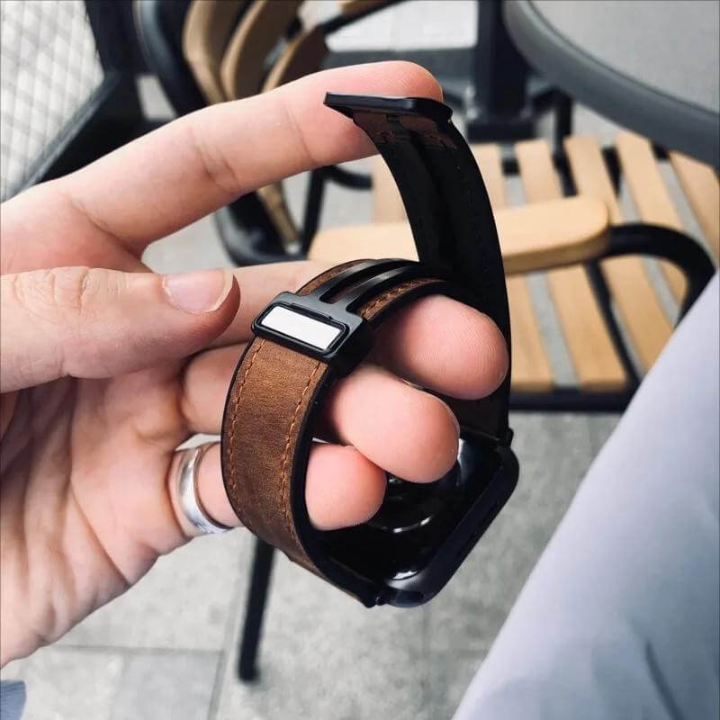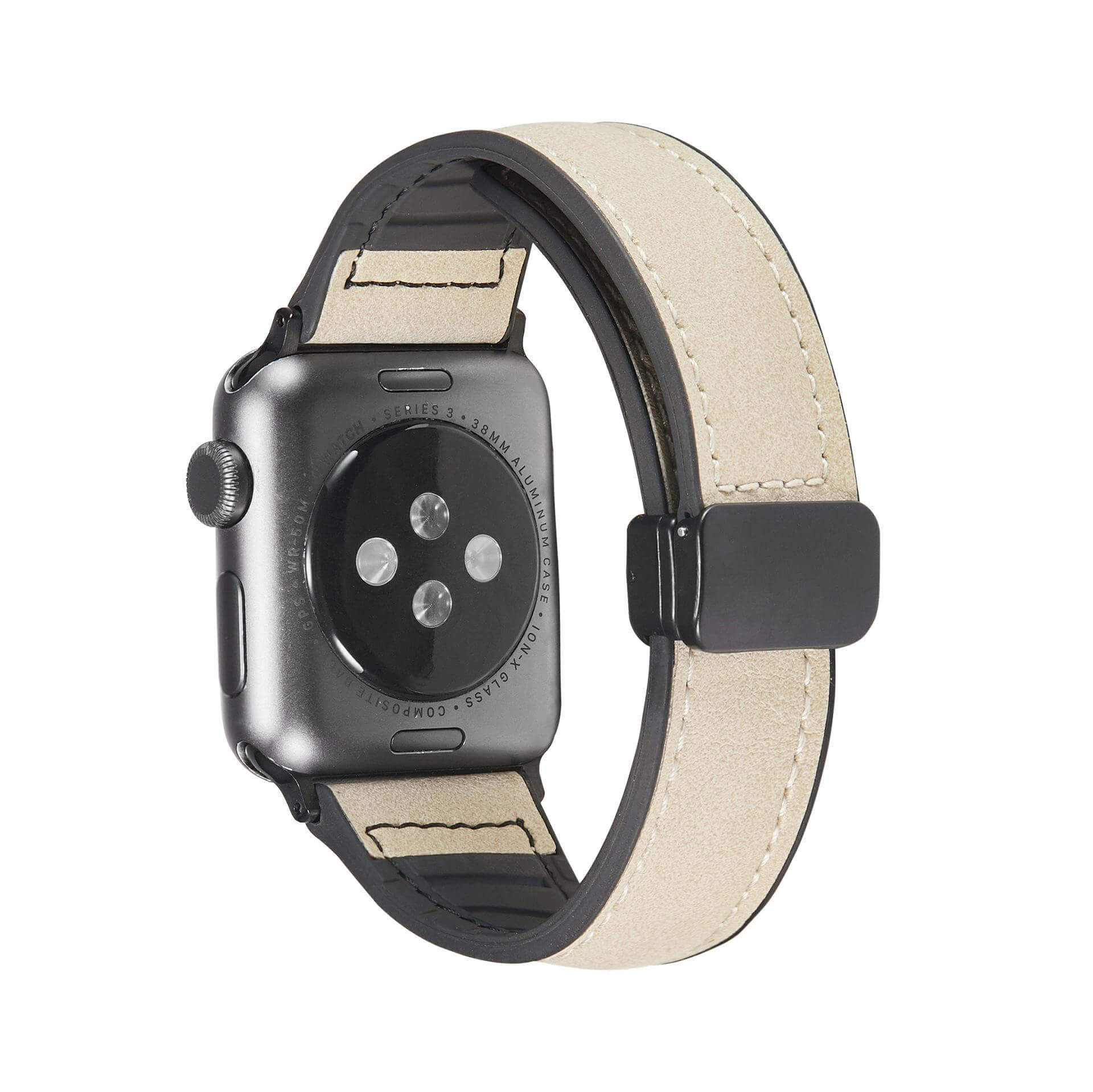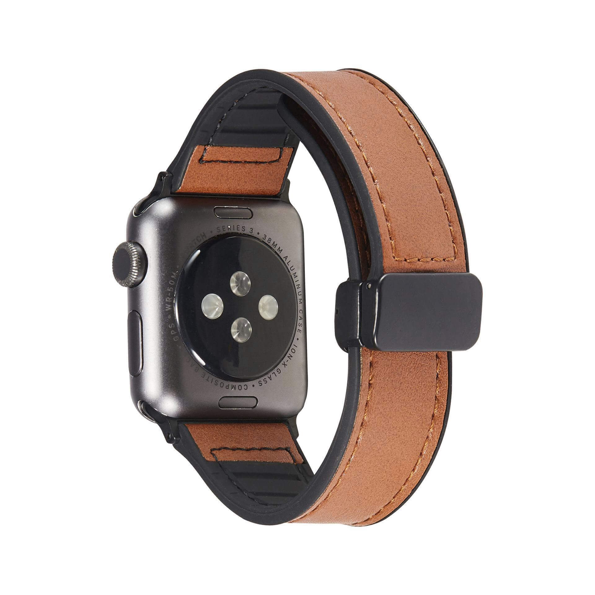 Bauen Sie in mehreren leistungsstarken Magneten, und aus langlebigen weiches Leder und Silikon, Keine Spuren auf der Lederoberfläche nach Kratzern, einfach, aber attraktiv, sehen fantastisch aus und geben einen schönen professionellen Look bei jeder Gelegenheit; Weiches biegsames Leder-Silikon-Material bietet komfortables und sanftes Gefühl für Ihr Handgelenk, geruchlos und umweltfreundlich, es ist eine gute Wahl für Uhrenzubehör.