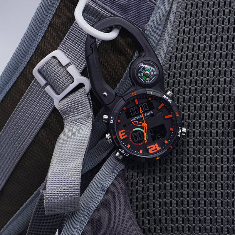 Karabineruhr mit rundem Bildschirm und Kompass für den Außenbereich