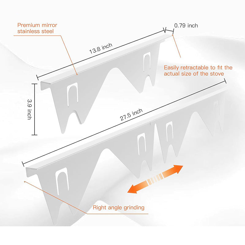 EINFACH RETRACTABLE LÄNGE: Das flexible, verstellbare Design passt sich an unterschiedlich große Lücken an und gewährleistet eine perfekte Passform für die meisten Herde und Arbeitsplatten. Ziehen Sie die Abdeckungen einfach ein oder fahren Sie sie aus, um sie an Ihre Bedürfnisse anzupassen.