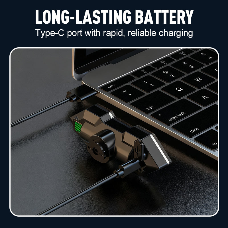 BATTERIE MIT LANGER LAUFZEIT – Der integrierte 800 mAh Akku ermöglicht einen langen Betrieb, während der Type-C-Anschluss schnelles und zuverlässiges Aufladen unterstützt, sodass Sie mit minimaler Standzeit immer fahrbereit sind.