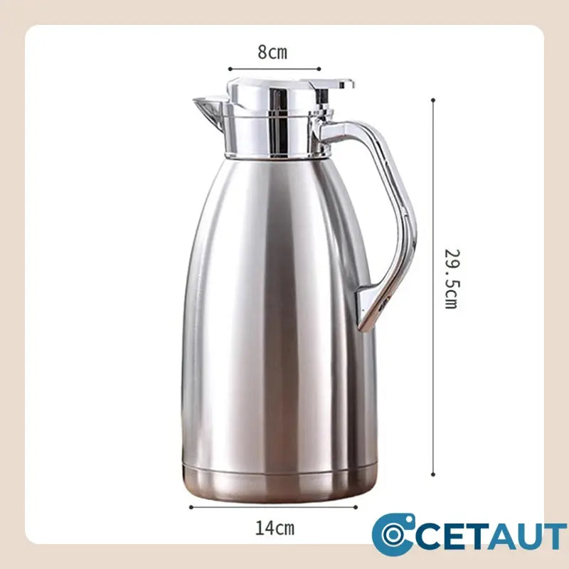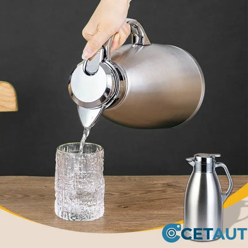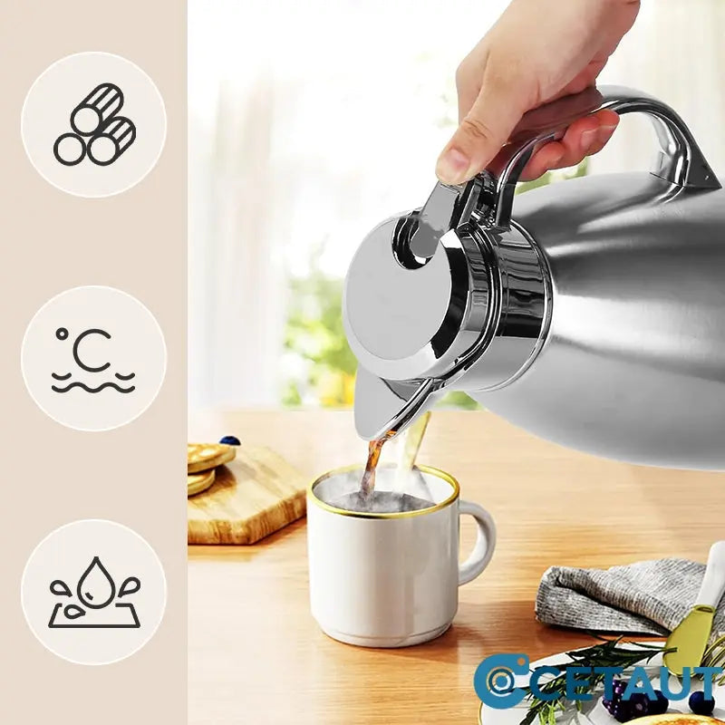GROSSE KAPAZITÄT UND HITZEBESTÄNDIGER GRIFF: Mit großzügiger Kapazität fasst diese Thermoskanne eine große Menge Ihres Lieblingsgetränks. Der hitzebeständige Griff ermöglicht sicheres und bequemes Ausgießen ohne Verbrennungsgefahr.