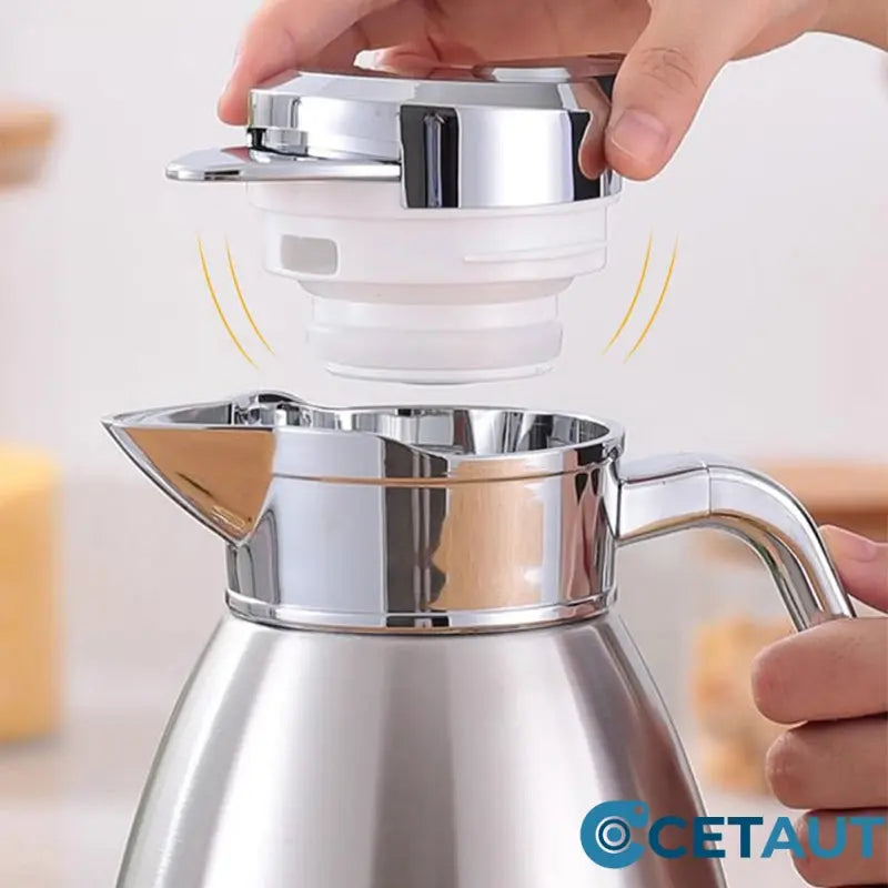AUSLAUFSICHERER DECKEL UND STAUBDICHTER AUSGUSS: Mit einem sicheren, auslaufsicheren Deckel sorgt diese Thermoskanne dafür, dass keine Flüssigkeit verschüttet wird. Der staubdichte Ausguss verhindert Verunreinigungen und hält Ihr Getränk sauber, und Sie können es einfach und ohne Kleckern ausgießen.