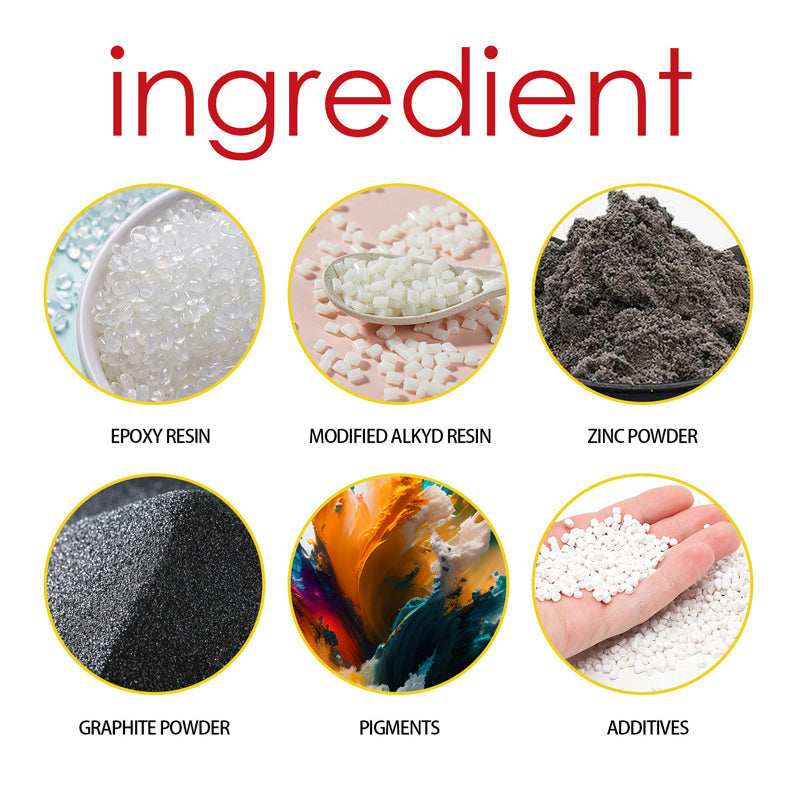 Inhaltsstoffe: Epoxidharz, modifiziertes Alkydharz, Zinkpulver, Graphitpulver, Pigmente, Additive.