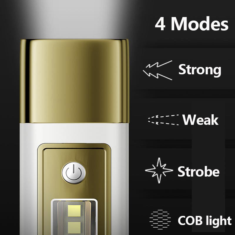 4 MODI – Verfügt über vier vielseitige Lichtmodi: stark, schwach, Stroboskop und COB-Licht. Passt sich verschiedenen Szenarien an, von intensiver Beleuchtung bis hin zu Notfallsignalen.